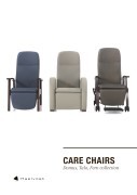 The Fero relax chair with lowerable armrests is made of a metal support and an upholstered backrest, seat and legrest. The chair is equipped with a recliner mechanism that was especially developed for the health care sector. The patent recliner mechanism makes it possible to tilt the backrest, seat and legrest simultaneously, so that the patient can lie in a zero gravity position. The recliner mechanism can be locked in each position by means of a lever that can be activated on both sides of the chair. The chair is attached to four design castors Ø 125 mm and has a standard extending footrest.