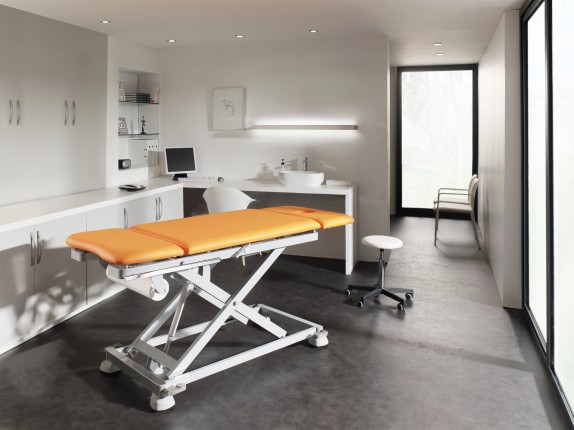 - Gynäkologische Version: Die Untersuchungsliege eignet sich besonders gut für gynäkologische Untersuchungen. Nur einiges Zubehör wie Beinhalter, Beinstützen und Handgriffe sind nötig.