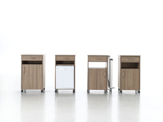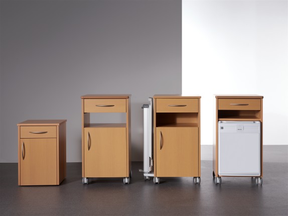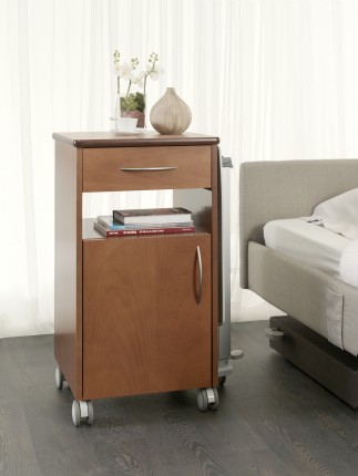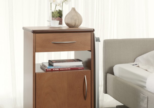 Optioneel kan de nachttafel uitgerust worden met een opklapbare eettafel Livia.